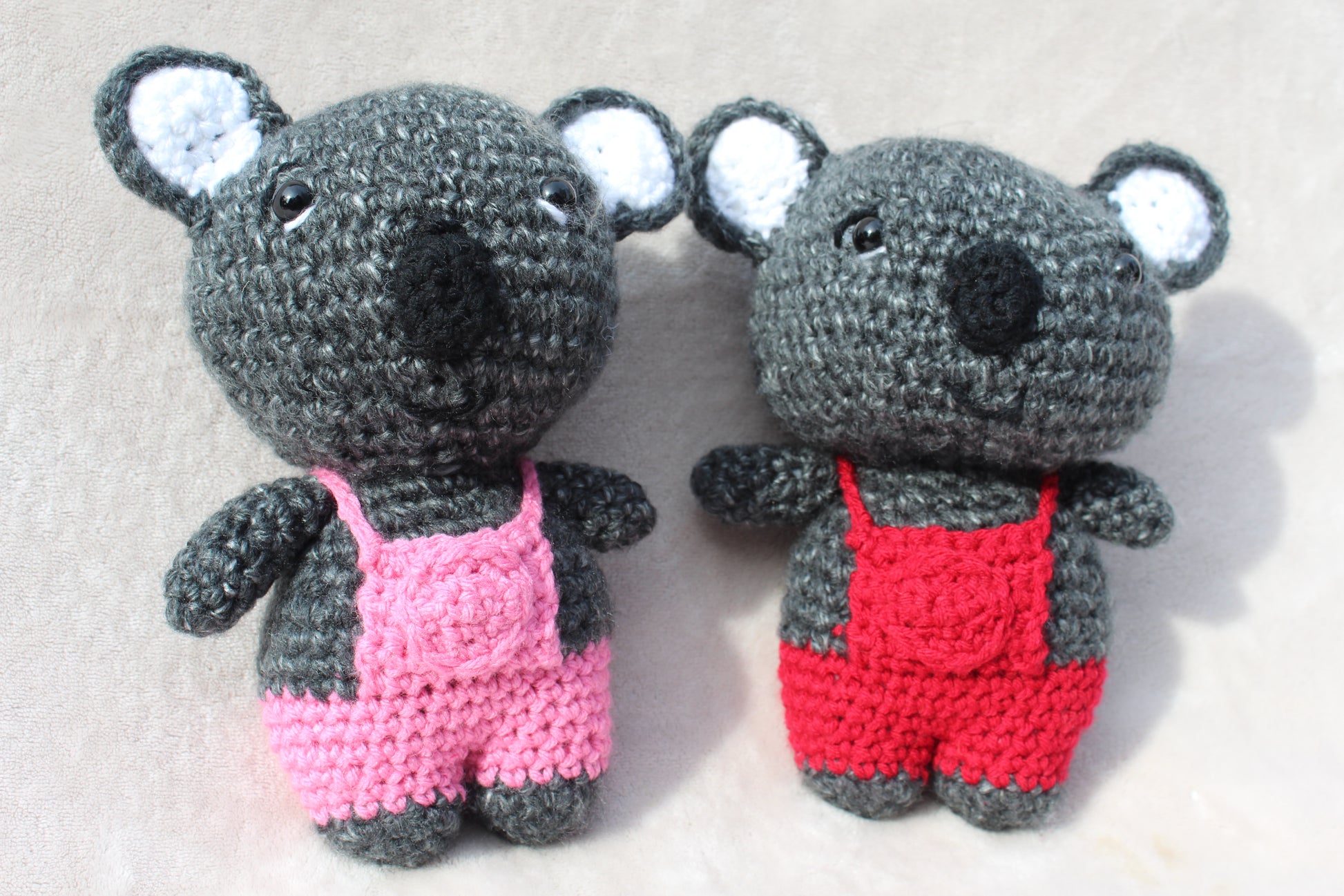 ~ These koalas measure 8.5" (2 cm) tall and 7" (18 cm) ear to ear.